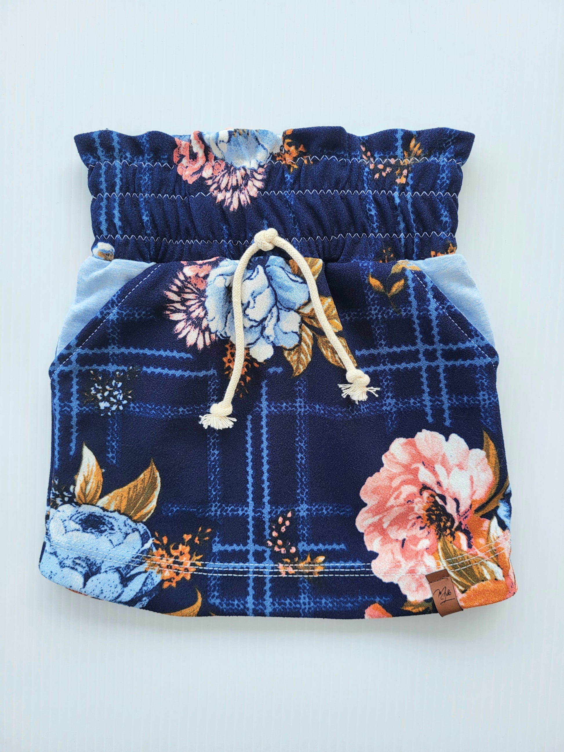A pocket skirt ready for your little! Made with a cotton spandex, it has a pocket on each side, faux drawstring and a paper bag waistband.