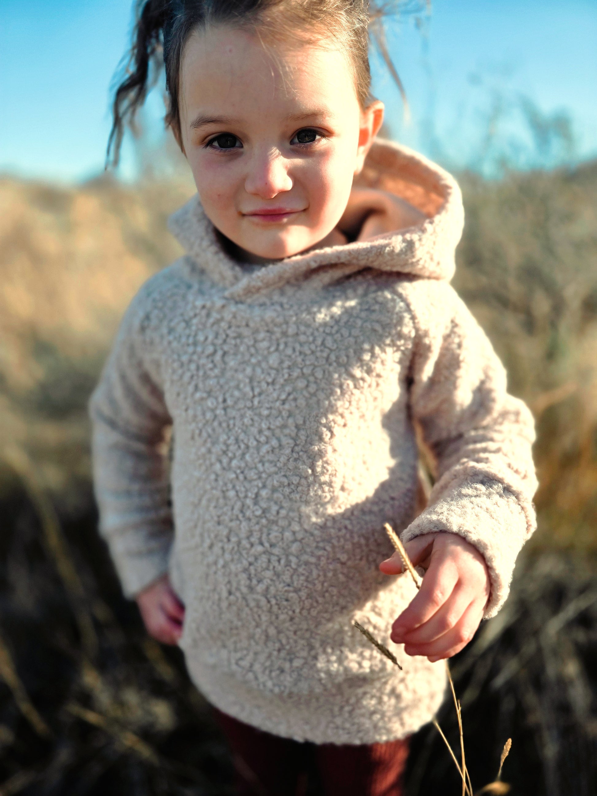 Meet the cutest little hoody for your littles, our teddy bear hoody! A thick sherpa type material, that is like a teddy bear! Simple with a hood but so cute! Available in two colours.